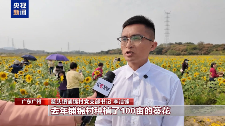 鳌头镇铺锦村党支部书记李洁锋:去年铺锦村种植了100亩葵花,打造了葵园,带动了鳌头镇58家农家乐和30多家民宿的消费。同时,周边的村民还可以把一些自家土特产带到集市上销售,销售情况非常好。