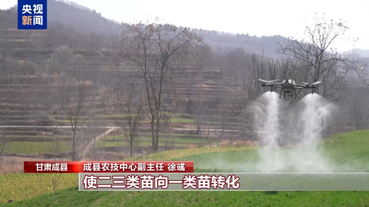成县农技中心副主任徐彧:当前主要做好“三情”调查,土壤墒情和苗情以及病虫情调查,根据苗情生长情况,进行叶面追肥,喷施植物生长调节剂。从调查情况来看,今年受到阴雨天影响,二三类苗比较多,最近喷施叶面肥和植物生长调节剂,使二三类苗向一类苗转化。